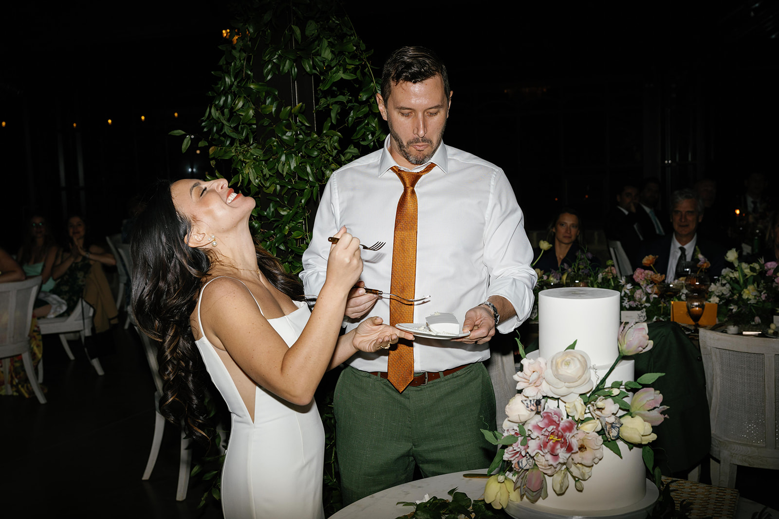 The dinner tables, adorned with rich velvet linens, set the tone for an opulent affair. Banquette seating provided a comfortable yet refined atmosphere, while lush florals and layered place settings elevated the overall design. Every detail, from the delicate candlelight flickering over custom linen letter-pressed menus to the elegant glassware, was a reflection of the couple’s impeccable taste and love for beauty.